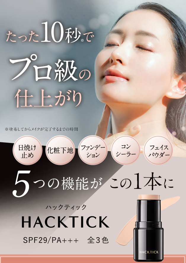 塗り広げるとバームがとろけてフラットな肌表面を形成してくれる「ハックティック」。